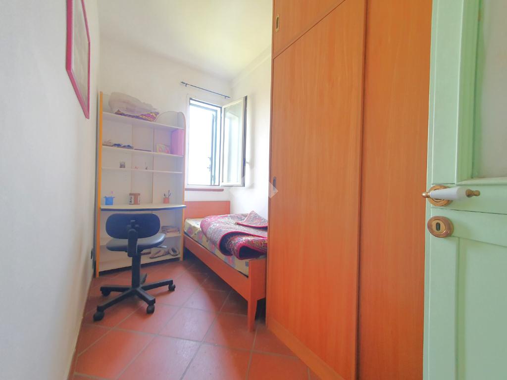 L'appartamento si compone di zona giorno composta da un accogliente soggiorno con camino funzionante e con balcone che affaccia sul prospetto principale e una cucina adiacente. La zona notte, invece, si compone di una camera da letto matrimoniale finestrata con vista panoramica, una cameretta anch'essa finestrata, un piccolo ripostiglio/lavanderia e un servizio finestrato con box doccia.