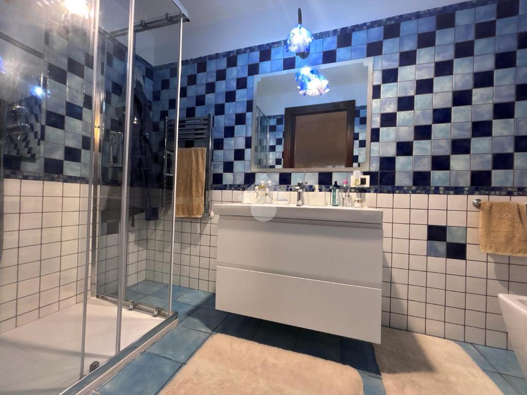 La zona notte al piano superiore, ospita una camera matrimoniale completa di cabina armadio e balcone angolare panoramico, una seconda camera e un bagno dedicato con box doccia.